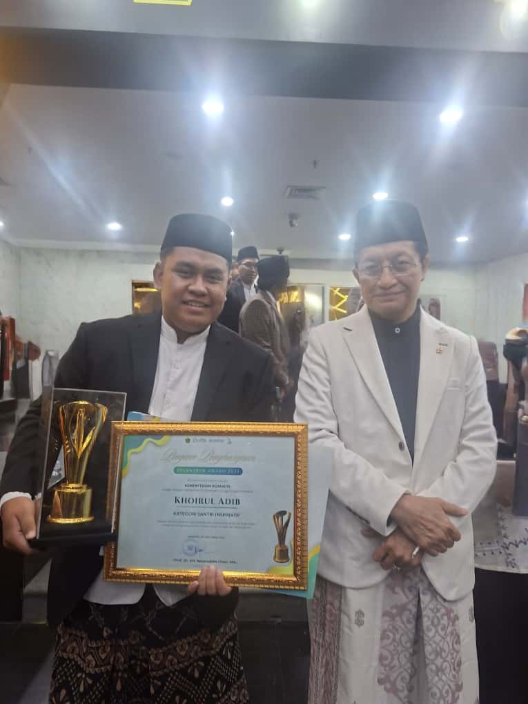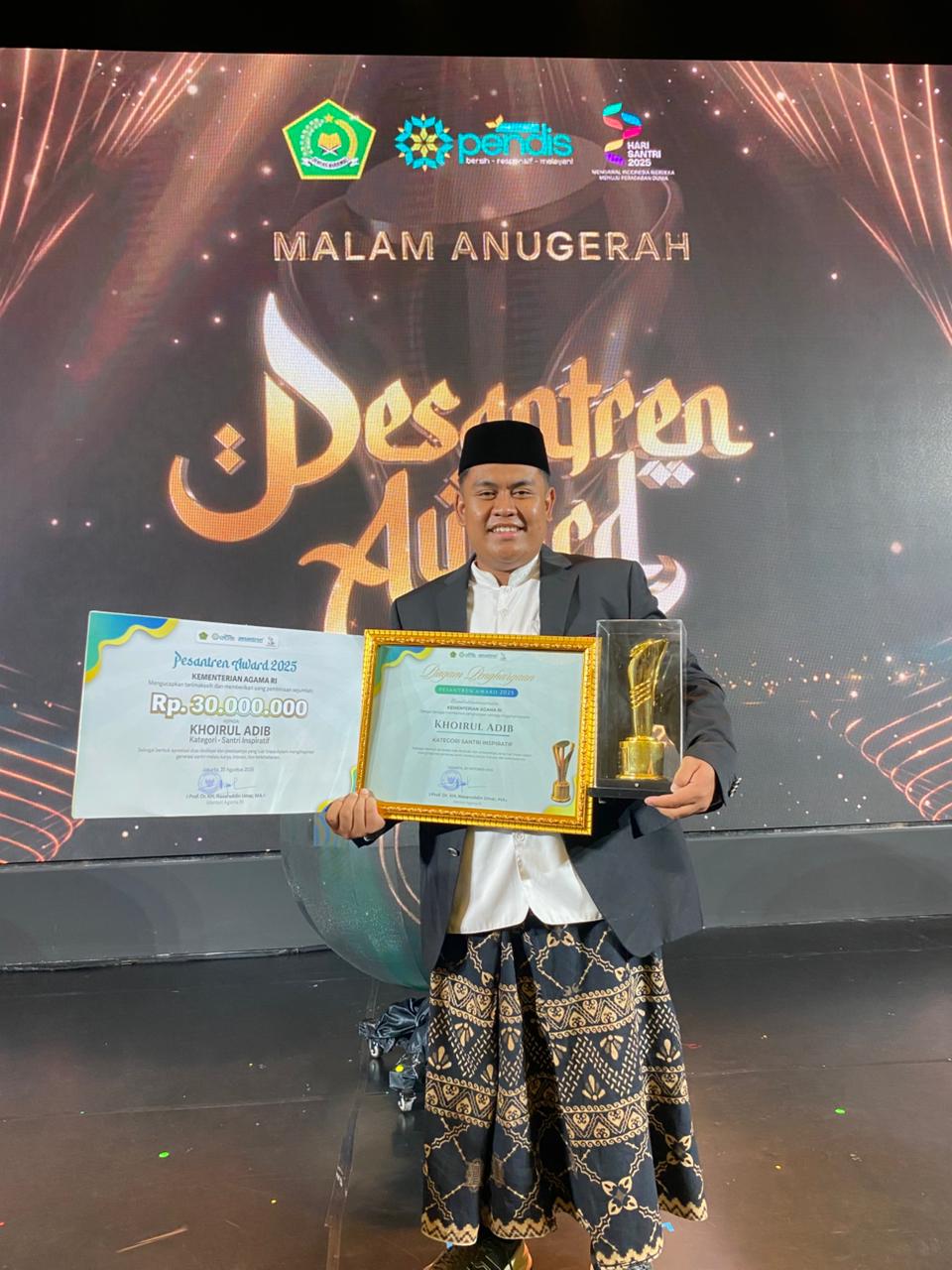 Jakarta-Khoirul Adib pegiat Griya Peadaban mendapat prestasi juara satu Santri Inspiratif pada ajang Pesantren Award 2025 yang diselenggarakan oleh Kementrian Agama Republik Indonesia dalam rangka memperingati Hari Santri Nasional tahun 2025, Senin (20/10/2025).
